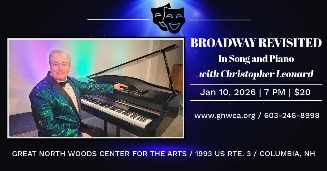 Great North Woods Center for the Arts 1993 US-3, Columbia, NH, United StatesIn song and piano with Christopher Leonard.