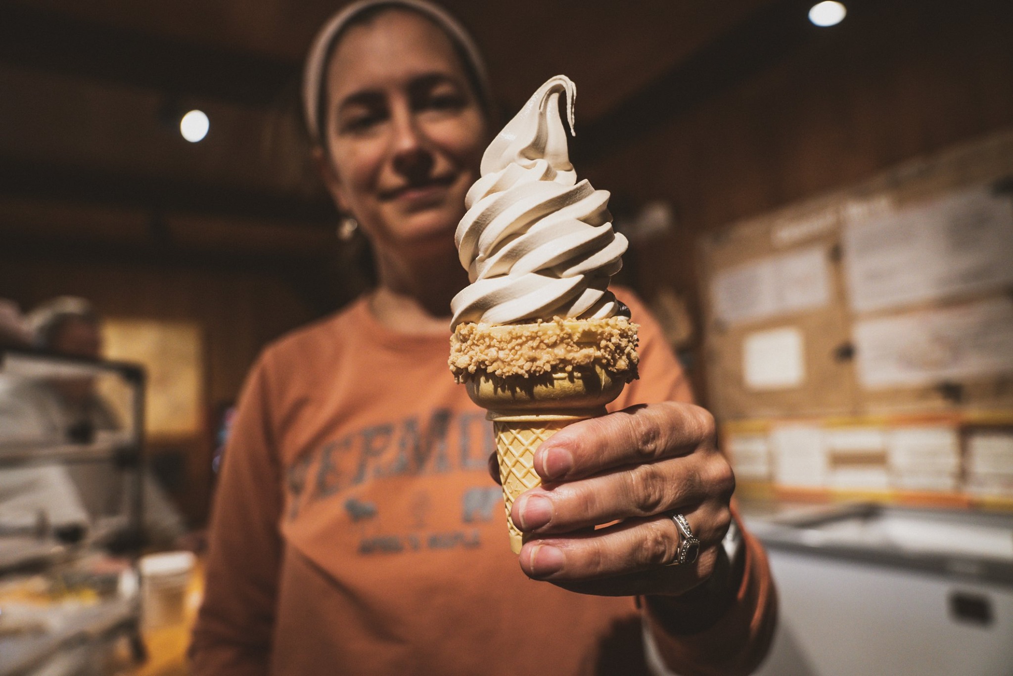 We take maple sugaring seriously, and the North Country produces some of the best maple sugar products in New England. Nowhere is that more evident than at April’s Maple, where you can buy maple products, enjoy maple-infused sausages, sandwiches and even hot dogs, and have a delicious Maple Creemee.